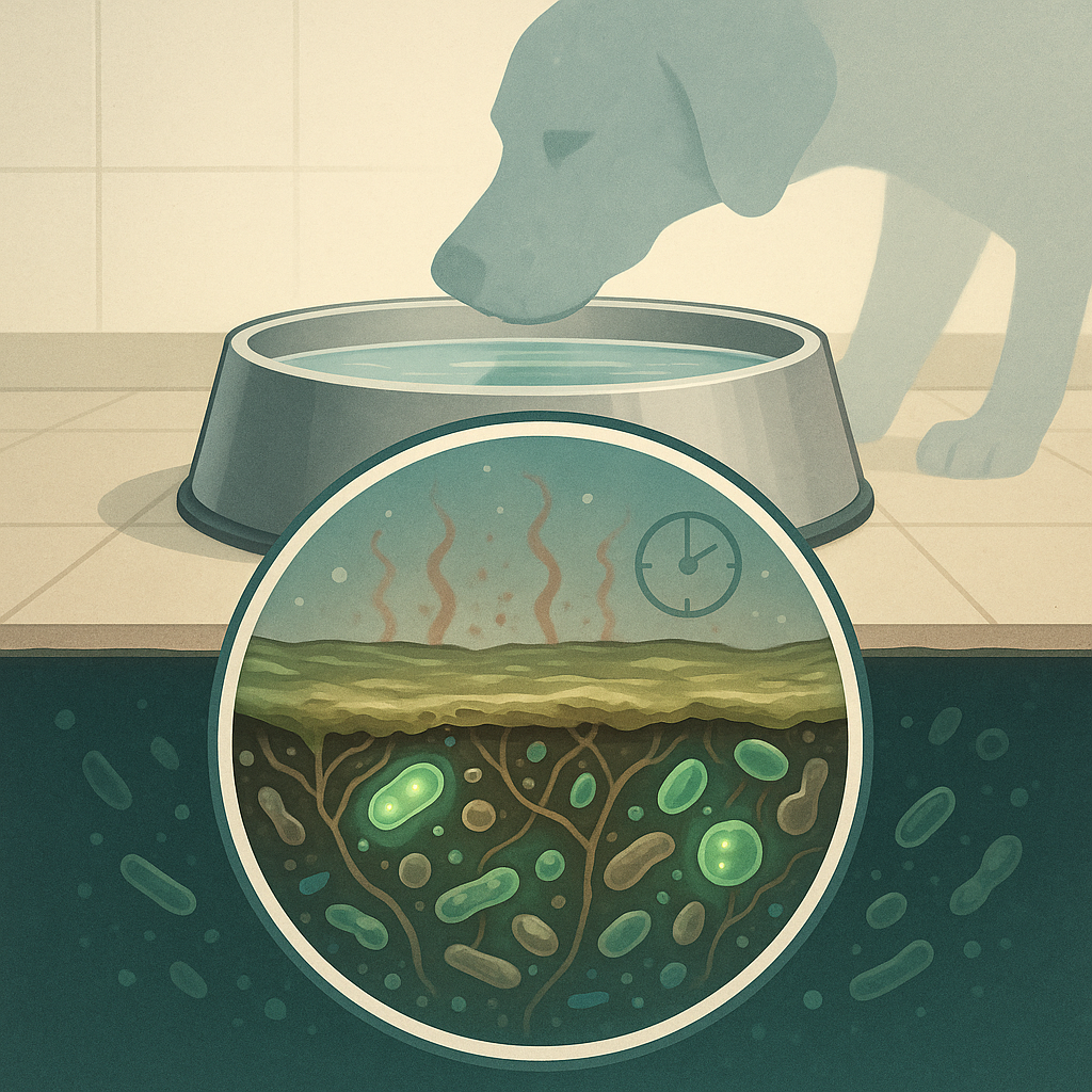 I modsætning til almindelige fontæner, der stadig bliver slimede, skaber VetiFlow forhold, hvor biofilm slet ikke kan dannes.